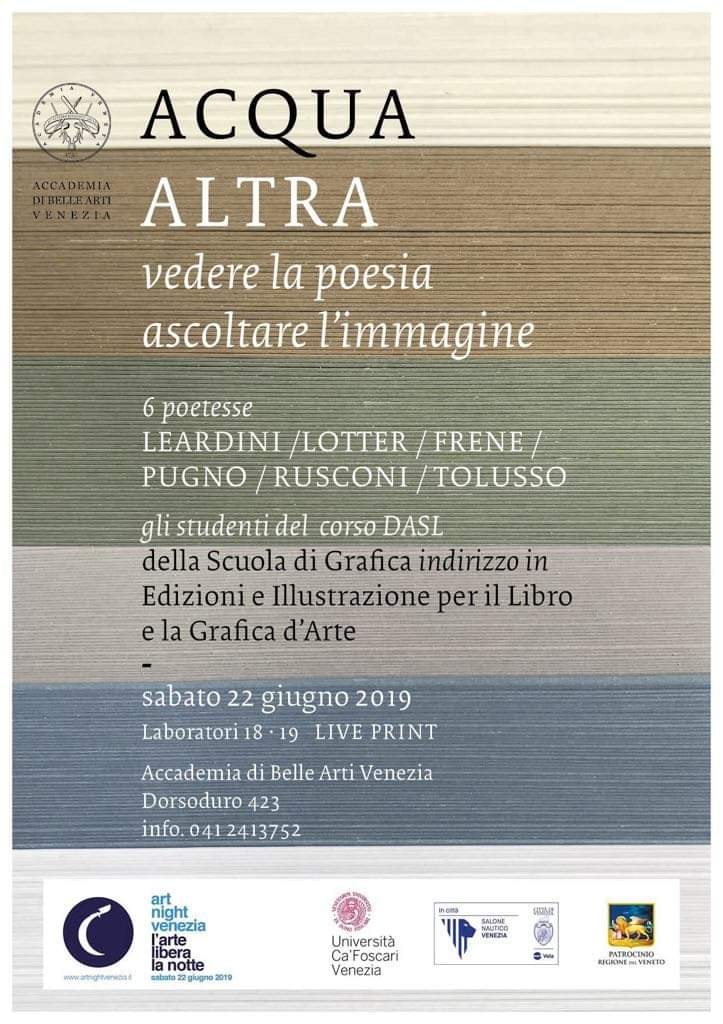 Sei poetesse, sei plaquettes di poesia realizzate dagli studenti di grafica dell’Accademia di belle arti di Venezia, sotto la guida del professor Giovanni Turria.