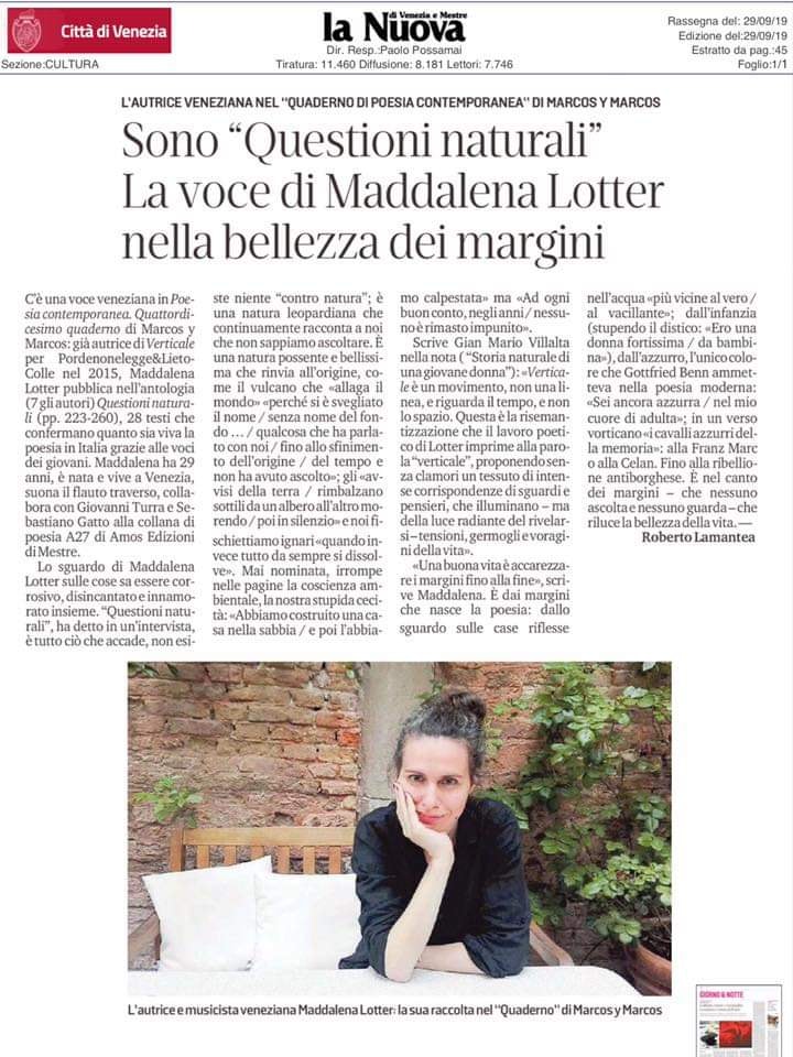 Intervista e proposta di testi (con registrazione vocale) da “Questioni naturali” per Mediumpoesia, a cura di Silvia Righi